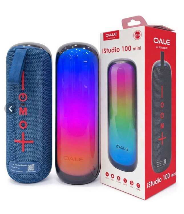 اسپيكر بلوتوثى iStudio 100 از برند معتبر OALE با طراحى زيبا و عملكرد بى نظير، تجربه اى متفاوت از شنيدن موسيقى را ارائه مى دهد. اين اسپيكر قابل حمل با نوريردازى RGB، صداى استريو بسيم و دو بلندكوى قدر تمند، انتخابى عالى براى استفاده در خانه، طبيعت يا مسافرت است. نسخه بلوتوث 5.0 اين اسپيكر اتصال سريع و پايدار را تضمين مى كند وبا باترى 3000 ميلى آميرى خود، بيش از 12 ساعت يخش مداوم را ارائه مى دهد. iStudio 100 با پاسخ فركان 120H-20KHZ صدايى شفاف و بيس عميق توليد مى كند و از دستكاههايى مانند موبايل، تبلت ولپتاپ پشتيبانى مى نمايد. اين اسپيكر با شعار "صدايى كه مى توانيد ببينيد" تركيبى از صدا و نور را به شما هديه مى دهد ولذت كوش دادن به موسيقى را جند برابر مى كند. همين حالا اسپيكر