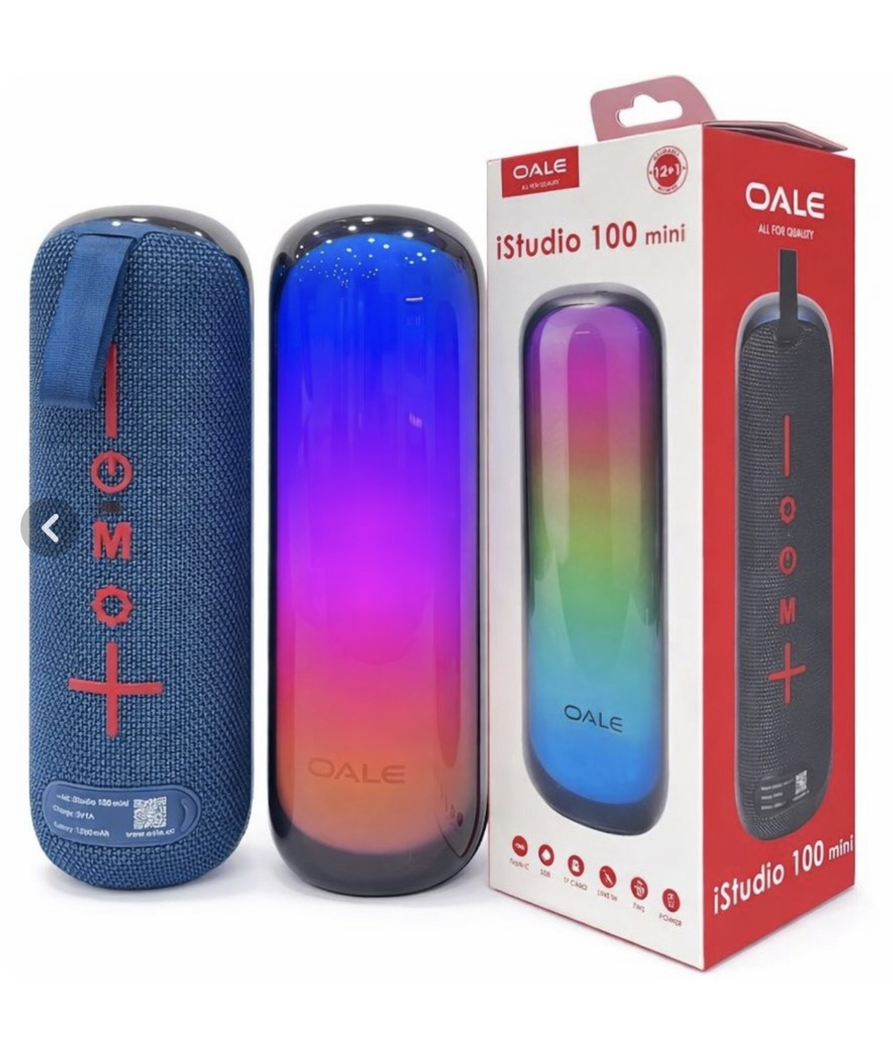 اسپيكر بلوتوثى iStudio 100 از برند معتبر OALE با طراحى زيبا و عملكرد بى نظير، تجربه اى متفاوت از شنيدن موسيقى را ارائه مى دهد. اين اسپيكر قابل حمل با نوريردازى RGB، صداى استريو بسيم و دو بلندكوى قدر تمند، انتخابى عالى براى استفاده در خانه، طبيعت يا مسافرت است. نسخه بلوتوث 5.0 اين اسپيكر اتصال سريع و پايدار را تضمين مى كند وبا باترى 3000 ميلى آميرى خود، بيش از 12 ساعت يخش مداوم را ارائه مى دهد. iStudio 100 با پاسخ فركان 120H-20KHZ صدايى شفاف و بيس عميق توليد مى كند و از دستكاههايى مانند موبايل، تبلت ولپتاپ پشتيبانى مى نمايد. اين اسپيكر با شعار "صدايى كه مى توانيد ببينيد" تركيبى از صدا و نور را به شما هديه مى دهد ولذت كوش دادن به موسيقى را جند برابر مى كند. همين حالا اسپيكر